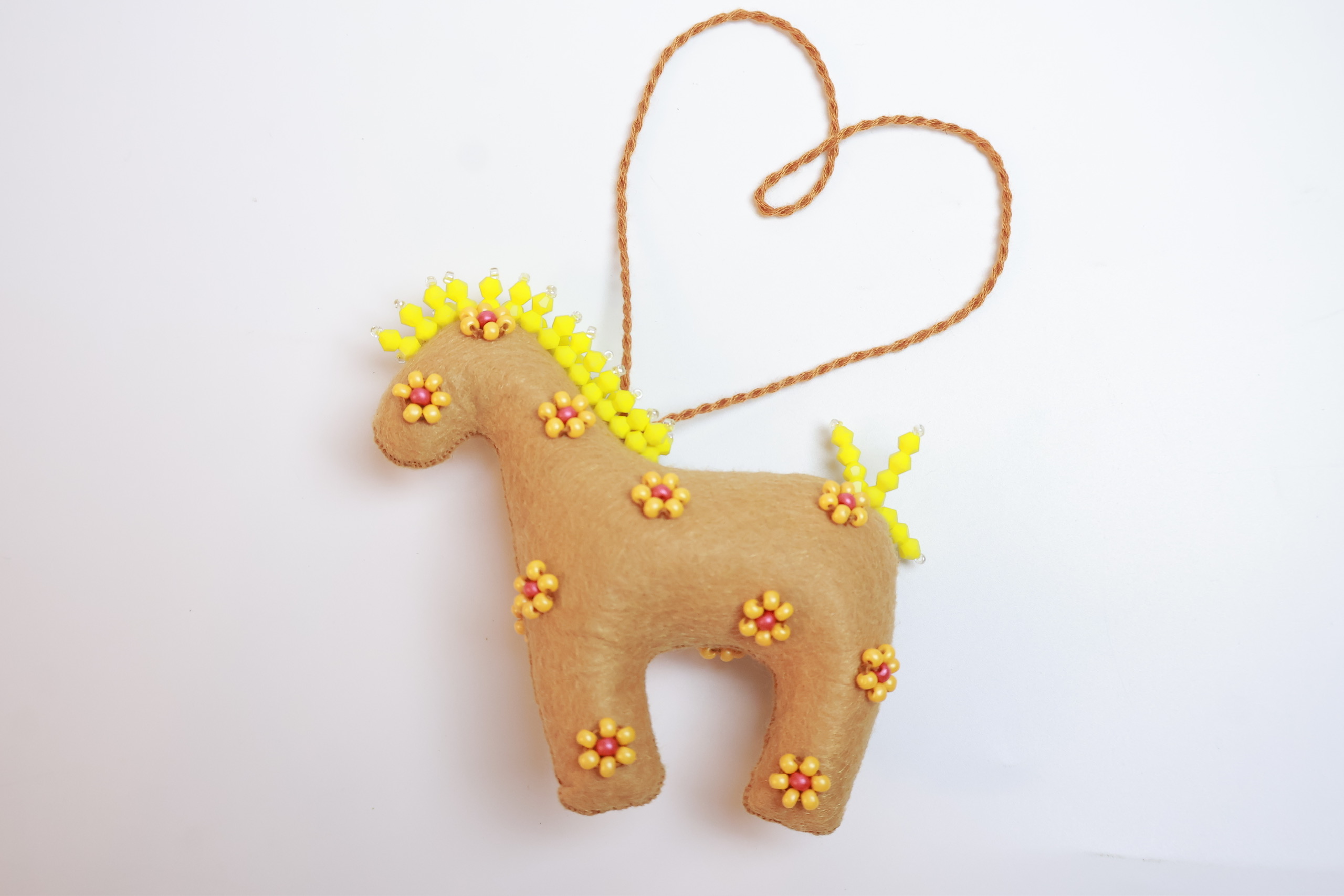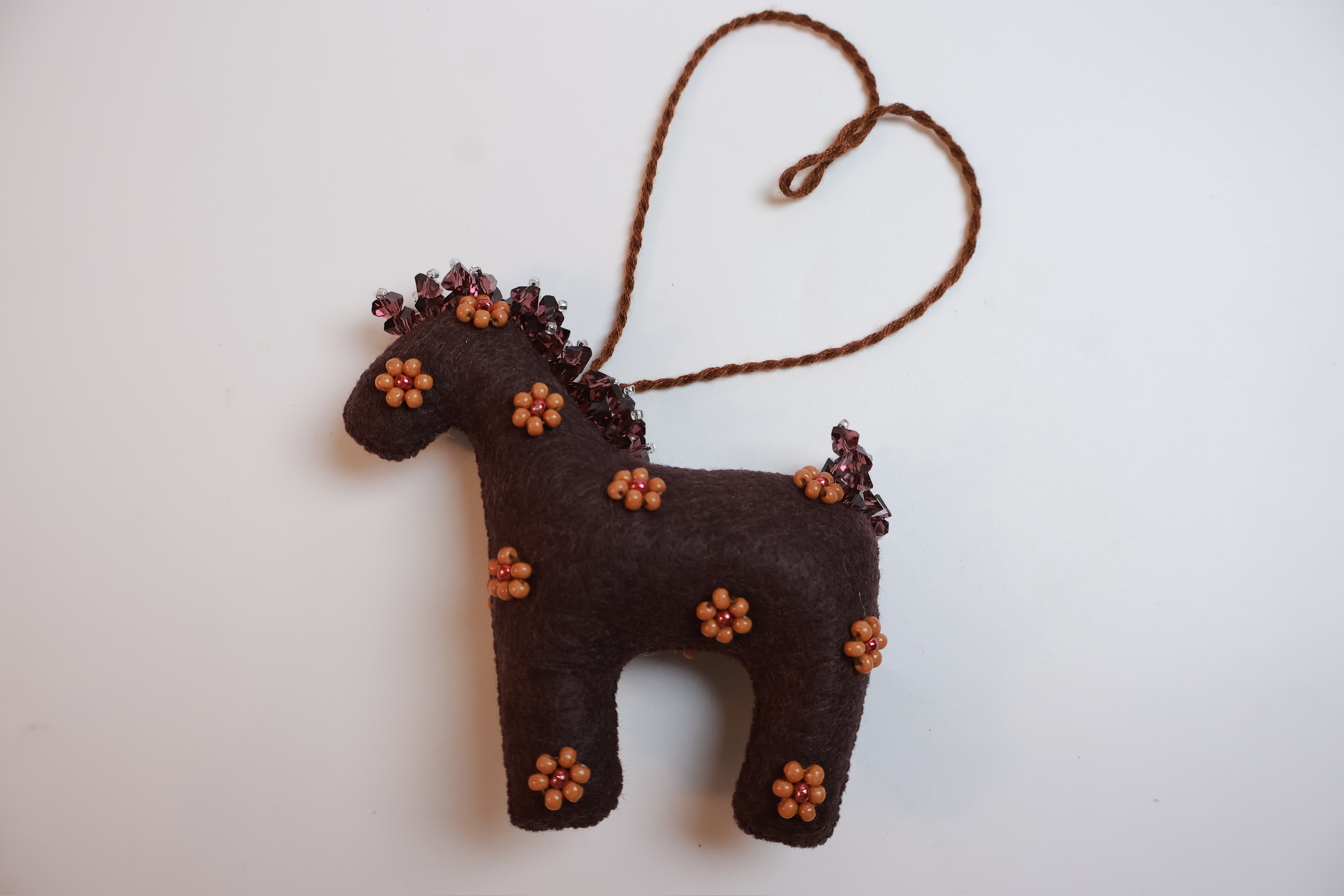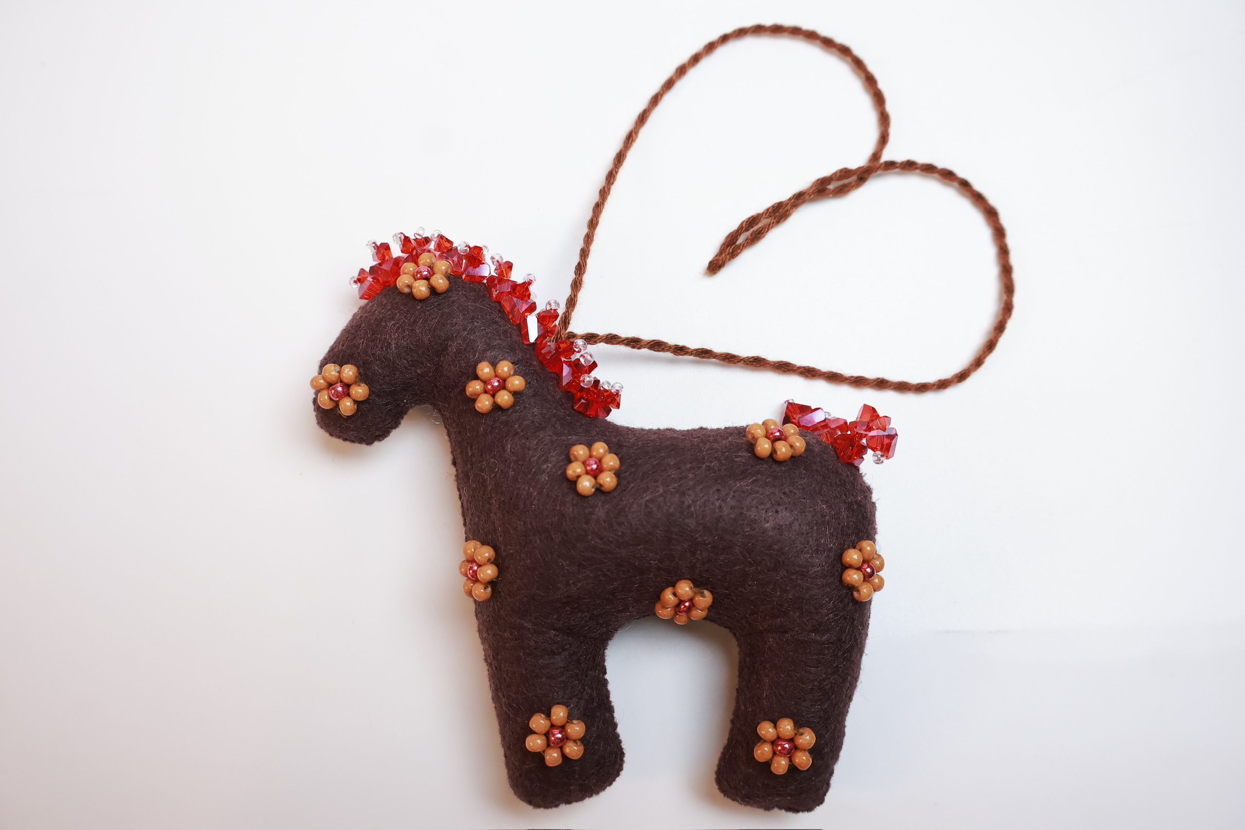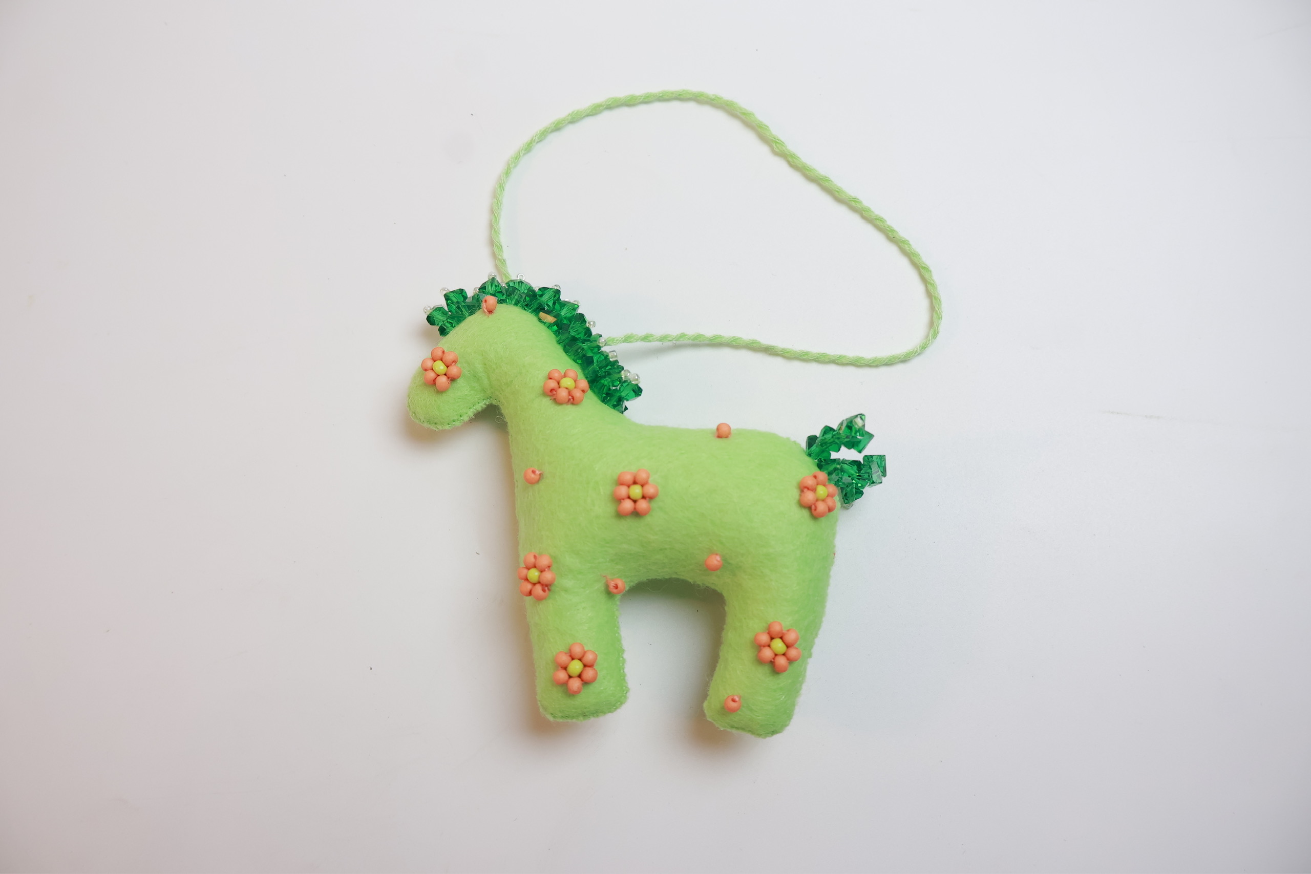 Bờm và đuôi được nhấn bằng các sợi cườm đa sắc, tạo hiệu ứng lấp lánh khi có ánh sáng chiếu vào