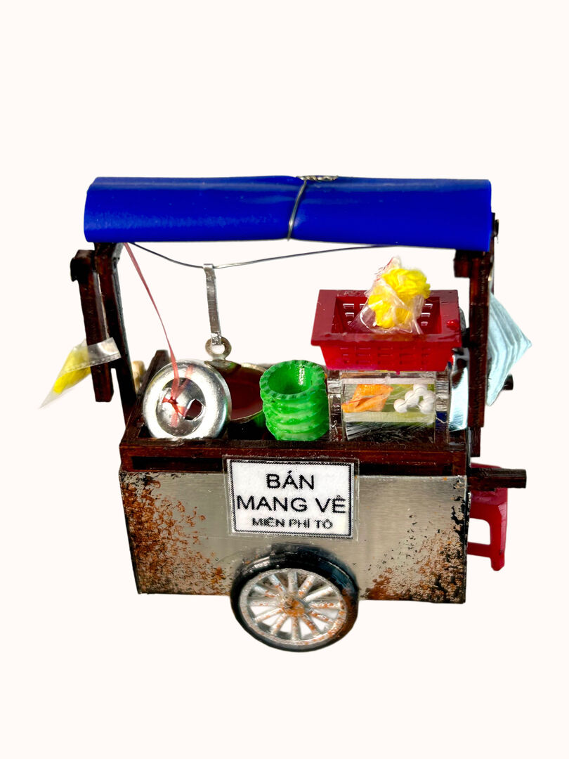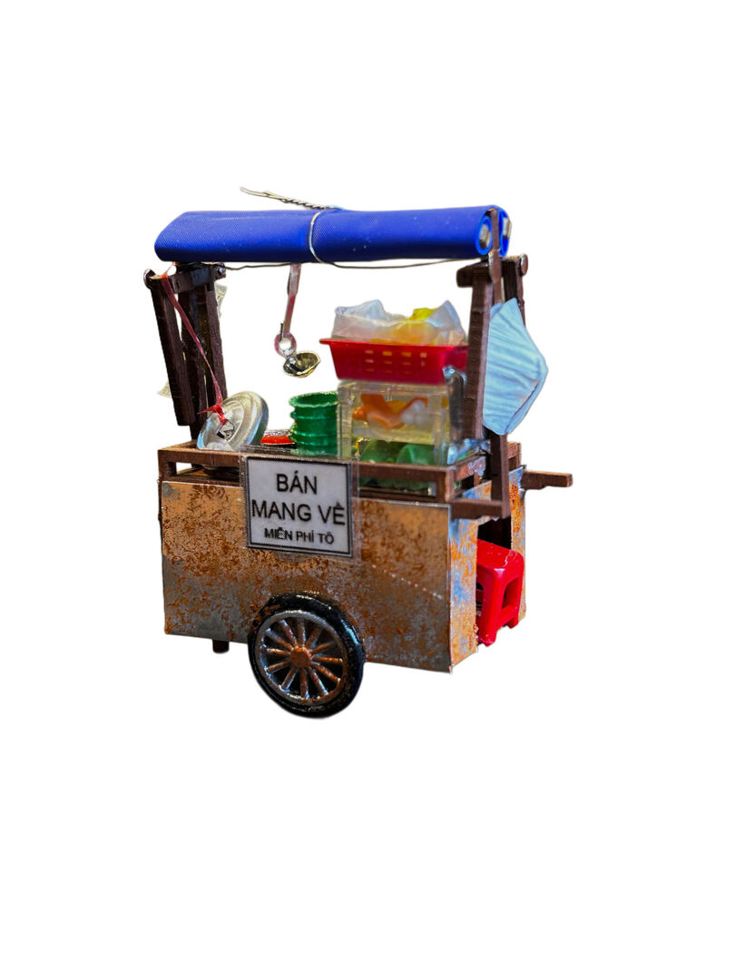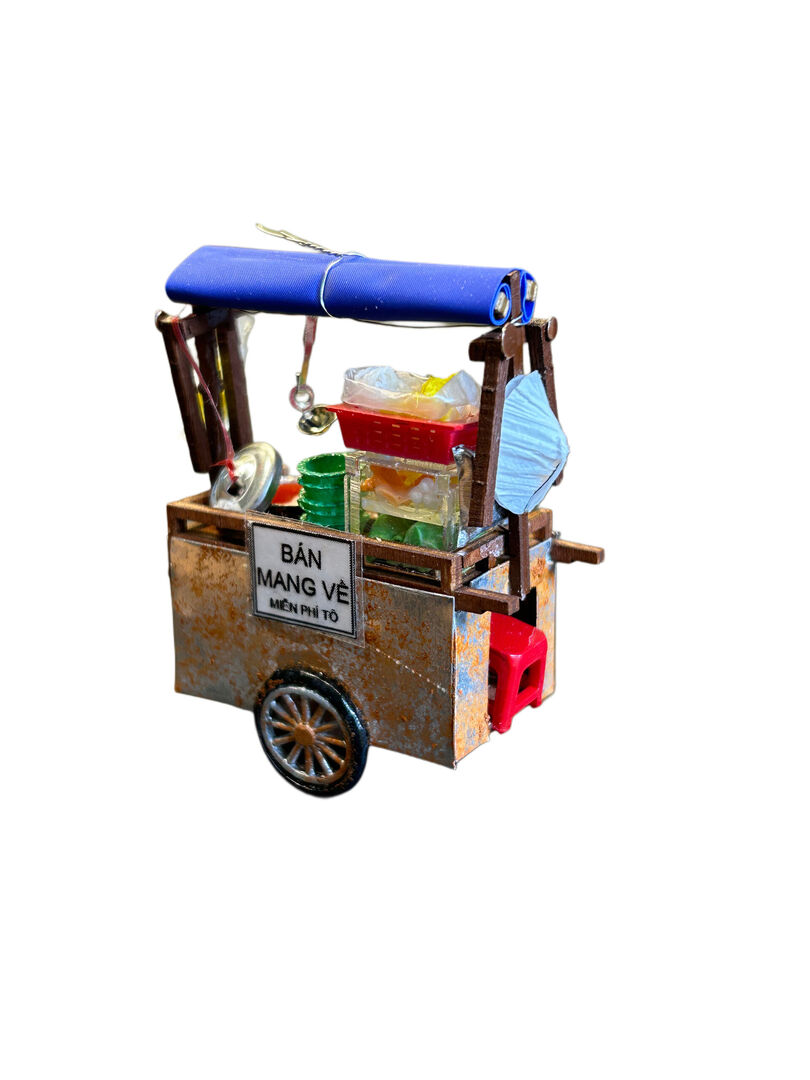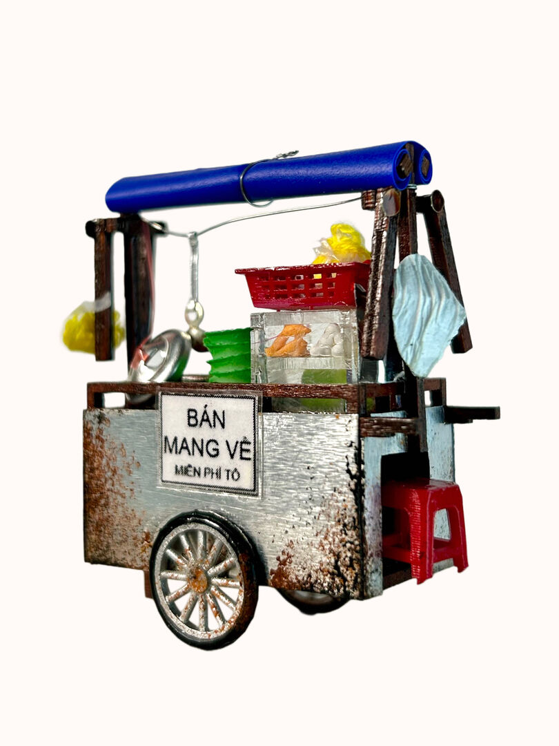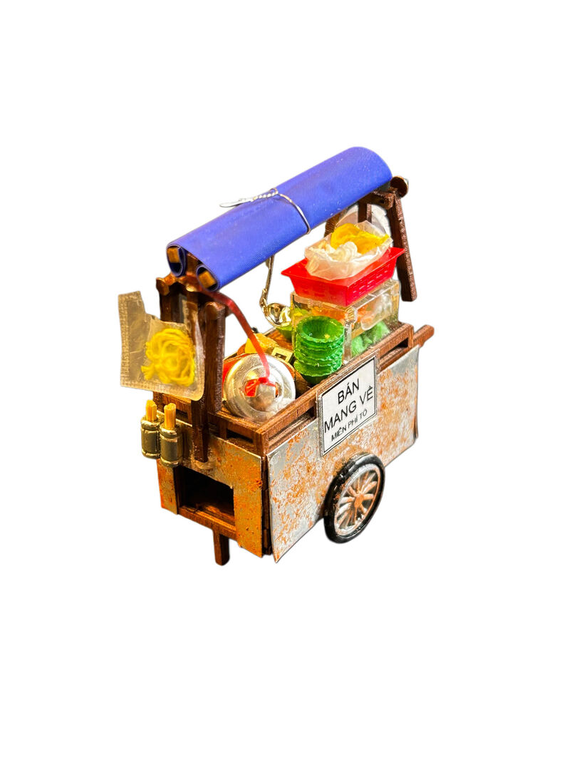 Xe Hủ Tíu Gõ Nam Châm Hít Tủ Lạnh The 90’s DIY mô phỏng lại chiếc xe hủ tíu gõ quen thuộc của người dân Sài Gòn, với các chi tiết được tái hiện một cách tỉ mỉ và tinh xảo, từ nồi nước lèo đến cái muổng múc nước lèo treo lơ lửng…